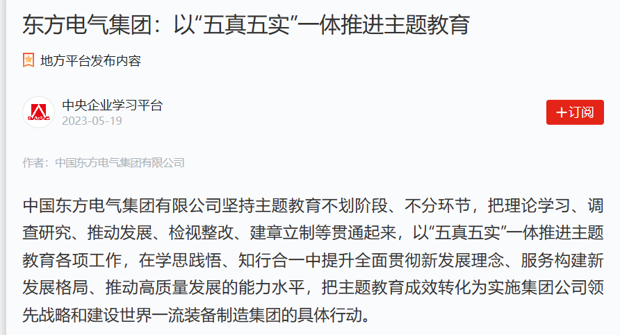 集团旗下东方电机策划并张榜红色沙龙、红色家信、红色故事分享等八个“揭榜领办”使命,招呼有能力、有实力的下层党组织团结公司要求,找准党建与中心事情融合点,起劲“揭榜”,自动“领办”,推动主题教育越爆发动鲜活、越发富有效果。东方锅炉把主题教育红色研学课堂搬到“中国革命的摇篮”井冈山,通过专题讲座、现场教学、情景体验和钻研交流等方法,把书籍学、实践学、现场学意会起来,起劲在以学铸魂、以学增智、以学正风、以学促干方面取得实着实在的效果。东方物产充分使用主题教育8种学习质料组织开展向导干部带动学、党群纪检职员自动学、先进小我私家引领学的“三个先学”念书运动,扎实开展理论学习。